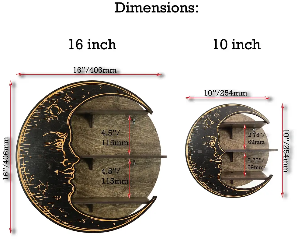 Celestial Crescent Moon Floating Shelf for Essential Oils, Crystals, Witchy Deco